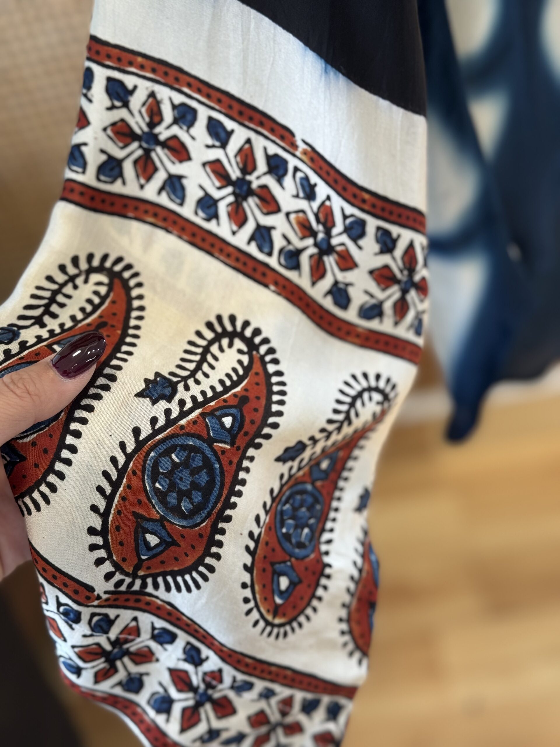 | Fabric | Modal Satin ajrak print. |