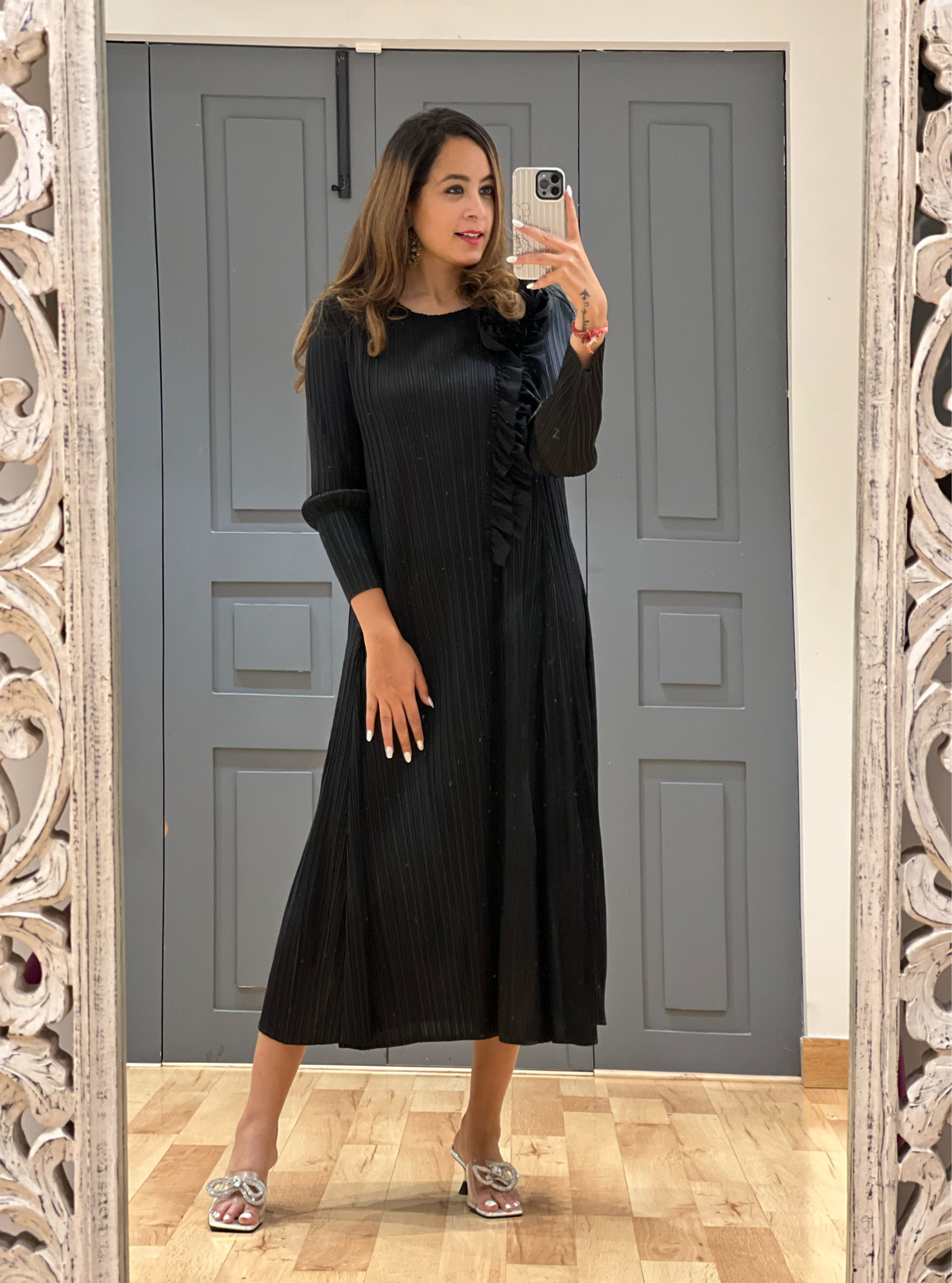 | Care | Pleating Is Permanent And Does Not Loosen Or Open On Washing. Handwash Lightly With Mild Detergent, Avoid Soaking. Gently Wring Out Excess Water. No Need For Dry Clean. If Wrinkled Use Steam Iron In The Direction Of The Pleats (reel Uploaded On Our Instagram To Explain The Same). Do not flat iron. Ps. Wash Garments When Necessary : Airing It After Every Use Will Keep It Fresh For Use, A Couple Of Times. |