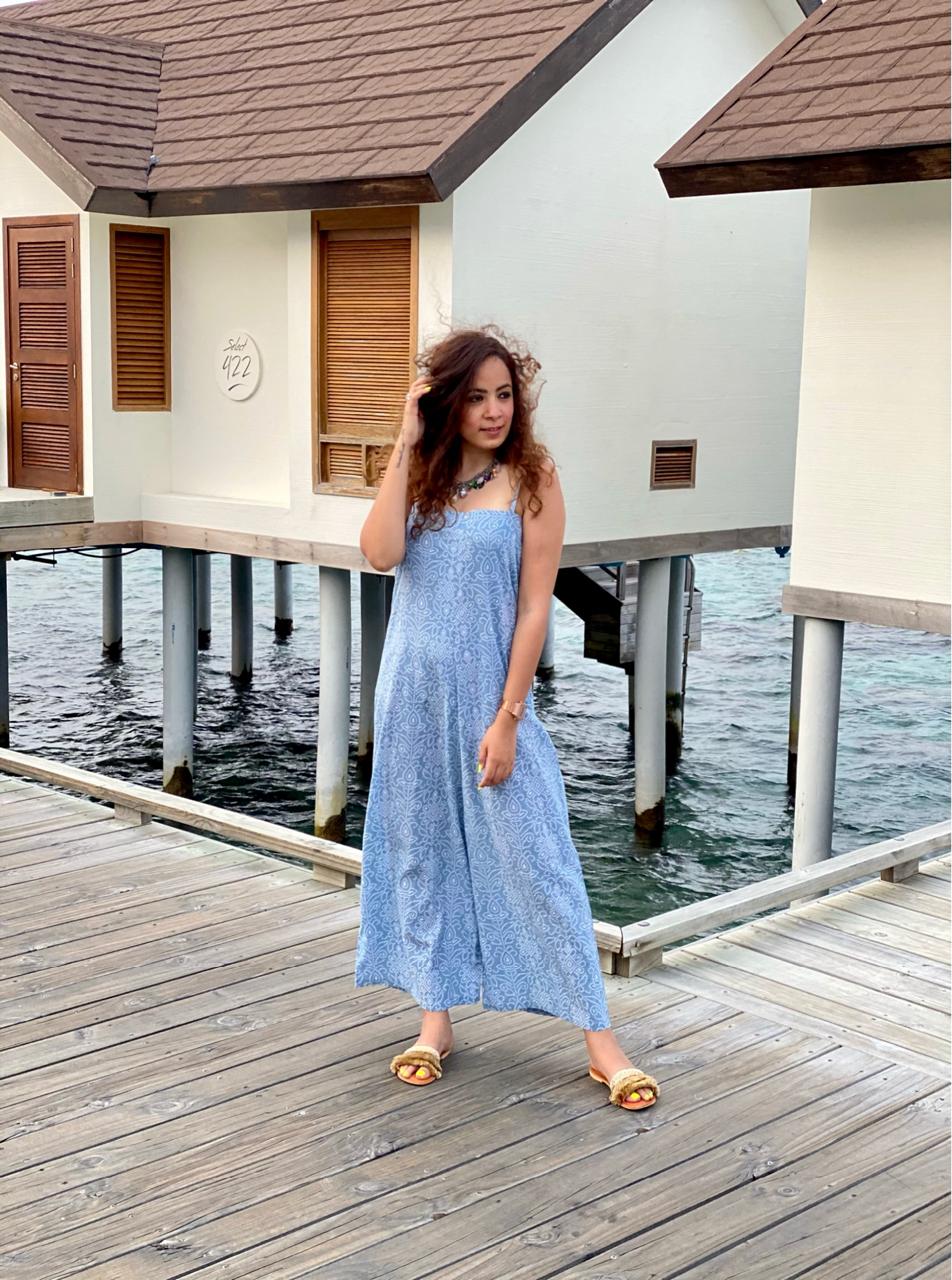 This has front zip and pockets too. Easy breezy style and fabric. Comfortable jumpsuit