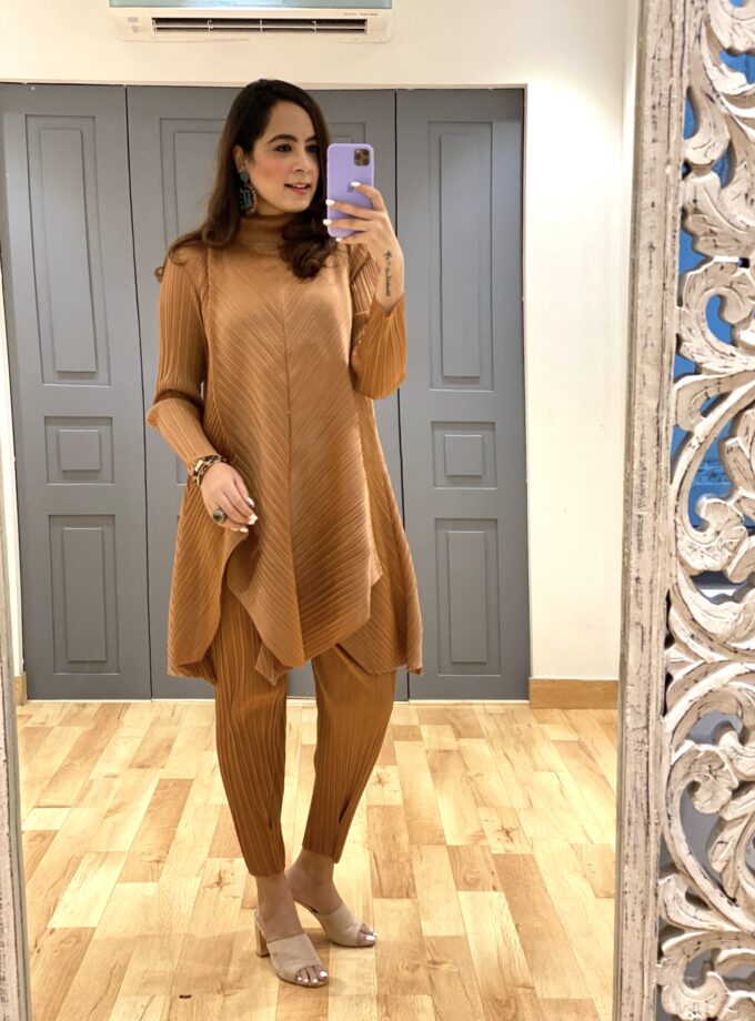 | Care | Pleating Is Permanent And Does Not Loosen Or Open On Washing. Handwash Lightly With Mild Detergent, Avoid Soaking. Gently Wring Out Excess Water. No Need For Dry Clean. If Wrinkled Use Steam Iron In The Direction Of The Pleats (reel Uploaded On Our Instagram To Explain The Same). Do not flat iron. Ps. Wash Garments When Necessary : Airing It After Every Use Will Keep It Fresh For Use, A Couple Of Times. |