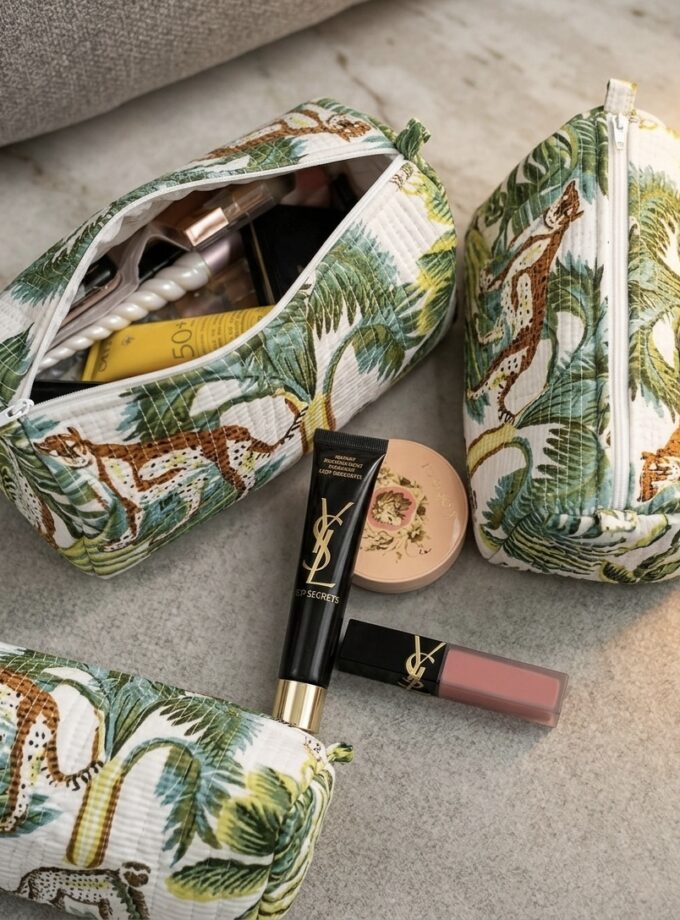 Quilted Handblock Printed Set of 3 Cosmetic - travel pouches with waterproof lining | ₹890.00 | In stock | Add to cart |